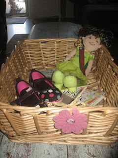 But for now I came up with designated baskets to contain the clutter. I still have a specific place for EVERYTHING so the basket helps contain it before it gets there. As I try to clean up around here, I take Cati's basket and grab her shoes, dress up clothes, books, stuffed animals, odds and ends and throw it all together in the basket. Usually I do this at nap time when they won't undo what I just cleaned. Then, when they wake up, I put it all back. Cati is getting great at doing this herself so that helps too. She puts away her laundry and toys from the basket and gets excited she helped Mommy. Everyone wins.